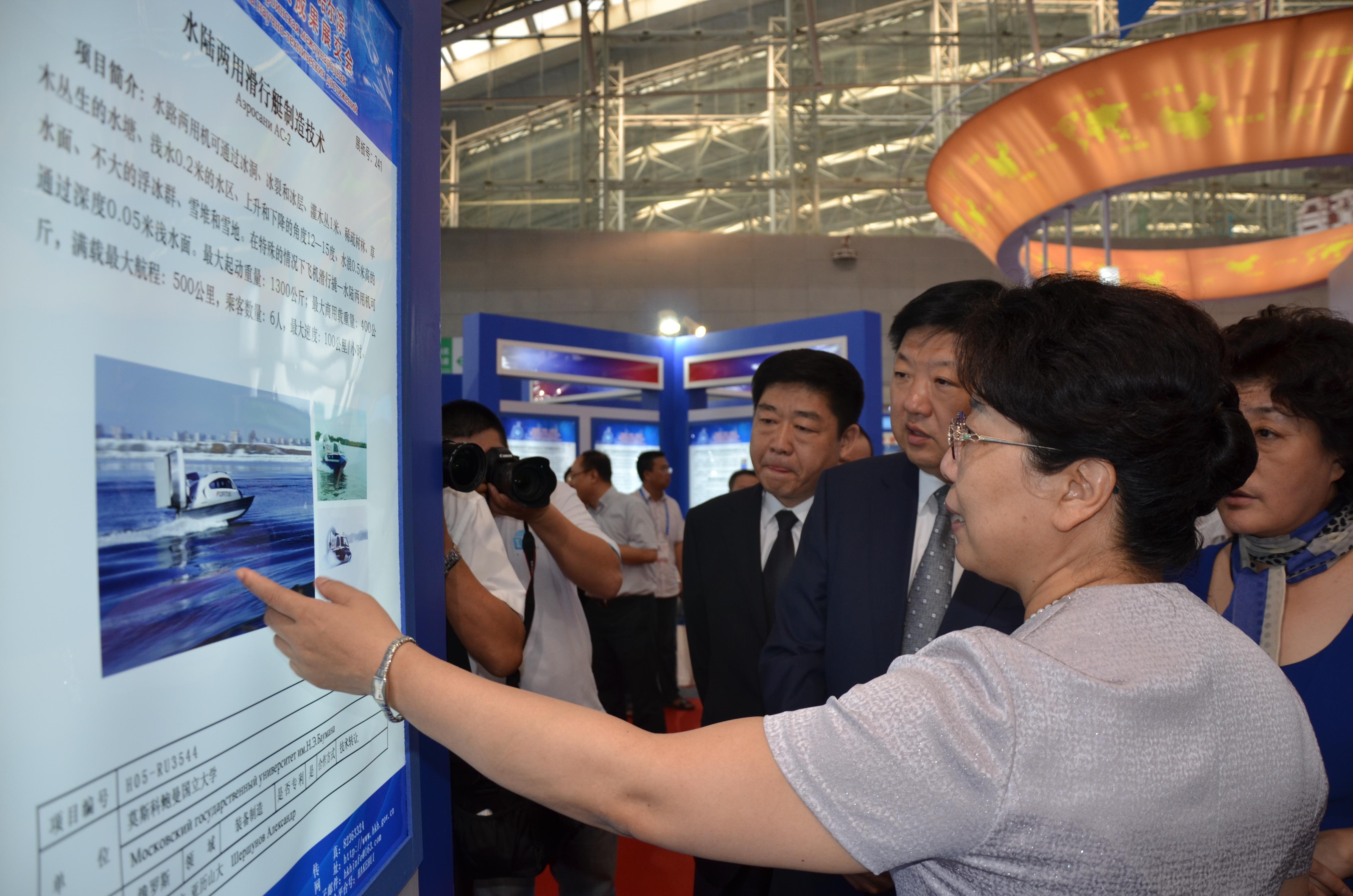 ? ? ? ?开幕式结束后,省委常委、统战部长赵敏,哈尔滨市长宋希斌,哈尔滨市副市长曲磊等领导对黑龙江省对俄工业技术合作中心的展位进行了视察,对其中展出的“水陆两用滑行艇”、“轻型多用途直升机”等项目给予高度评价,并做出重要指示,要尽快联系企业进行产业化,为黑龙江省的经济建设服务,同时对黑龙江省对俄工业技术合作中心的技术引进工作给予了肯定。